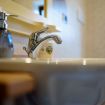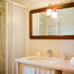 large bathroom with shower and bidet, furnished in rustic style;