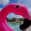 private outdoor space with tables, chairs, and sun loungers.